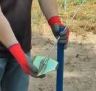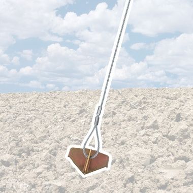 Kotva sa inštaluje pomocou masívnej plnej kovovej tyče, ktorá má na jednej strane zárezy, do ktorých kotva zapadne. Kotva sa tým stáva inštalačným hrotom. Tyč zatlčiete do zeme, aby vám tesne nad zemou ostalo trčať len kovové očko na lanku. Tyč potom vyberiete a lanko potiahnete, aby sa kotva v zemi spriečila a začala plniť svoju funkciu. |