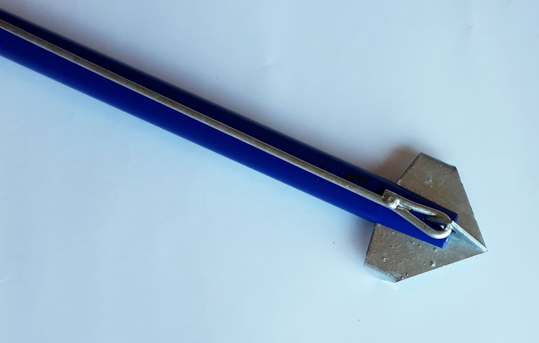 Kotva sa inštaluje pomocou masívnej plnej kovovej tyče, ktorá má na jednej strane zárezy, do ktorých kotva zapadne. Kotva sa tým stáva inštalačným hrotom. Tyč zatlčiete do zeme, aby vám tesne nad zemou ostalo trčať len kovové očko na tyčke. Tyč potom vyberiete a tyčku potiahnete, aby sa kotva v zemi spriečila a začala plniť svoju funkciu.